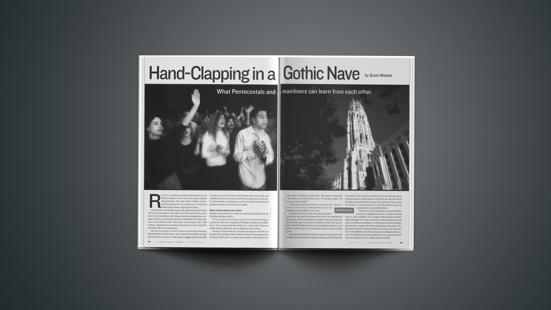 My aim is modest. It is not to foster ecumenical dialogue (though that would be nice), nor ecumenical worship (though that would be even nicer). I only hope to suggest that the standoff should cease—not for reasons of Christian unity, but so that each tradition can be more true to itself. Pentecostals can become better Pentecostals, and mainliners can become better mainliners, by paying attention to each other’s strengths.