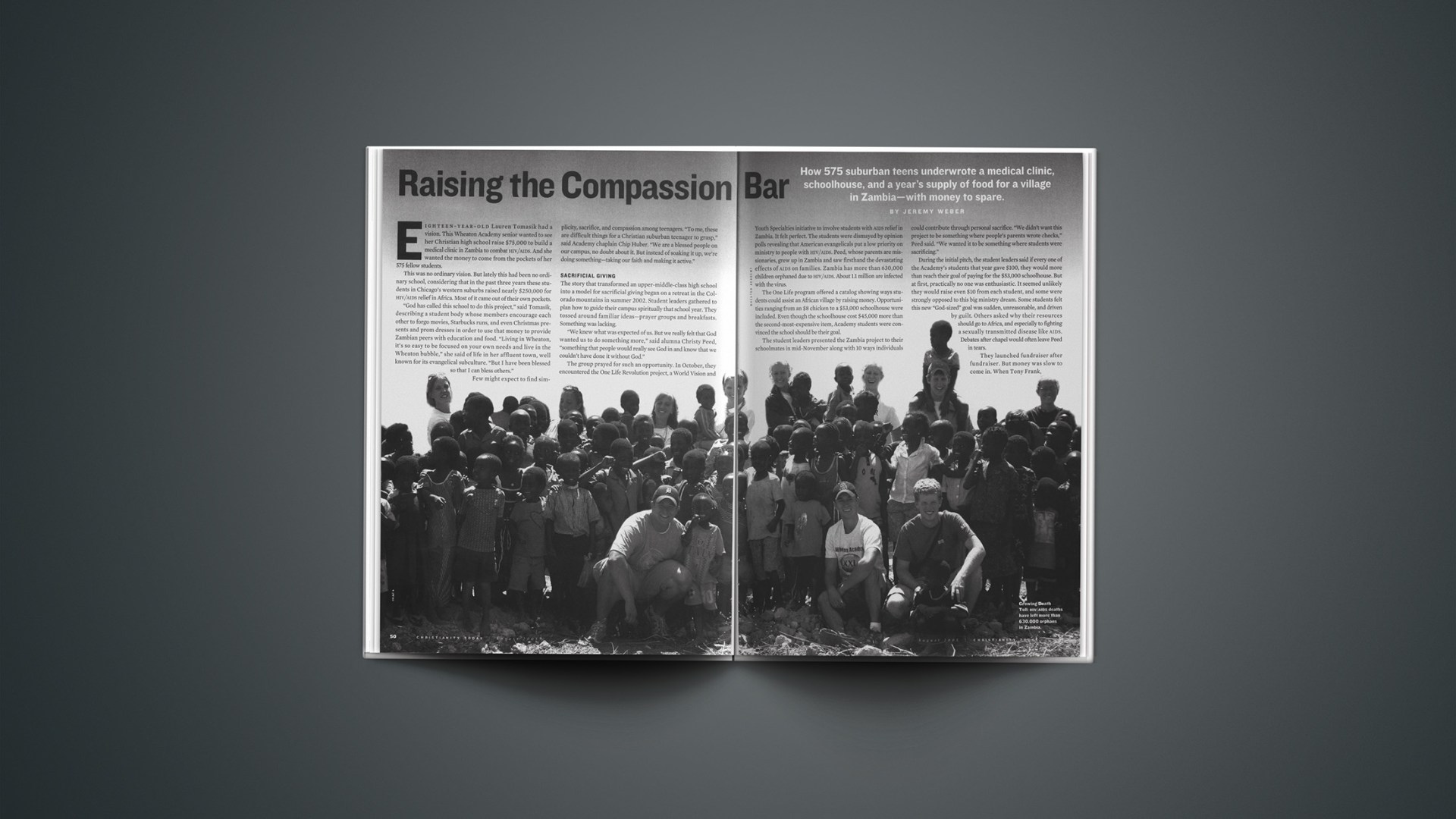 The story that transformed an upper-middle-class high school into a model for sacrificial giving began on a retreat in the Colorado mountains in summer 2002. Student leaders gathered to plan how to guide their campus spiritually that school year. They tossed around familiar ideas—prayer groups and breakfasts. Something was lacking.