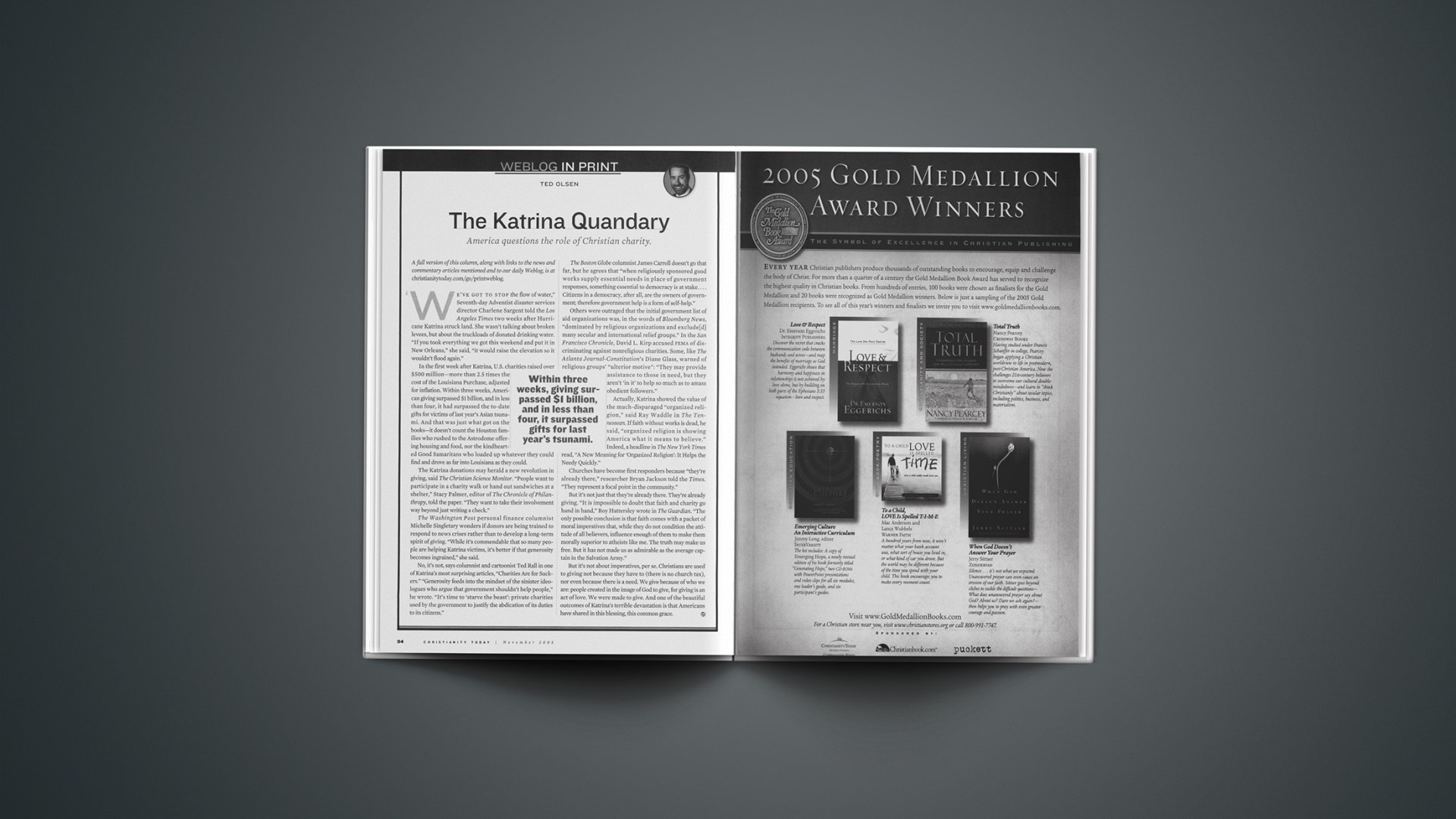 More Christianity Today coverage of hurricanes Katrina and Rita and their aftermath is at our full coverage area.
