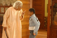 As always, Perry’s Madea is fierce and funny, coming to the easy, no-holds-barred defense of those she loves, schooling the women on how to protect themselves (think breakfast and Al Green) and keeping mouthy kids in check. She’s responsible for most of the film’s hilarity, creating several gut-busting moments with her rapid wordplay, her even faster fists and her own dramatic interpretation of one of Sofia’s monologues from The Color Purple. (Speaking of pop culture references, watch the scene from a famous episode of Good Times playing on the TV in the background as Madea irons and prepares to, uh, discipline Nikki).