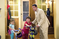 There are many who would appreciate Click for its message, sweetness, and occasional cleverness, only to be offended by the scatological humor. We’re not talking R-rated stuff, but at least half of the laughs come from gags involving flatulence, cleavage, sex, and too-tight Speedos (more of Sean Astin than I needed to see, thank you very much). The family dog is shown repeatedly trying to “mate” a giant stuffed toy, as if there could be nothing possibly funnier … until we see two dogs putting moves on the toy at the same time.