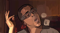 To give audiences a palpable sense of Fred’s delusion, Linklater uses the same style of animation that made his earlier film Waking Life so hypnotic. Animators “paint” over footage of the actors’ performances, using an innovative computer process called “rotoscoping.” In this way, these cartoon characters become hauntingly lifelike, preserving real movements, gestures, expressions, even scenery. Their outlines are unstable, and so is their environment, keeping us caught in a constant state of questioning the film’s “reality,” just as its characters do. It’s like living in a Kafka nightmare—a person chatting in your living room might suddenly transform into a cockroach.