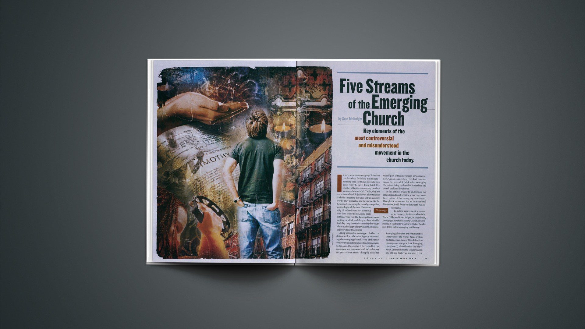 Following are five themes that characterize the emerging movement. I see them as streams flowing into the emerging lake. No one says the emerging movement is the only group of Christians doing these things, but together they crystallize into the emerging movement.