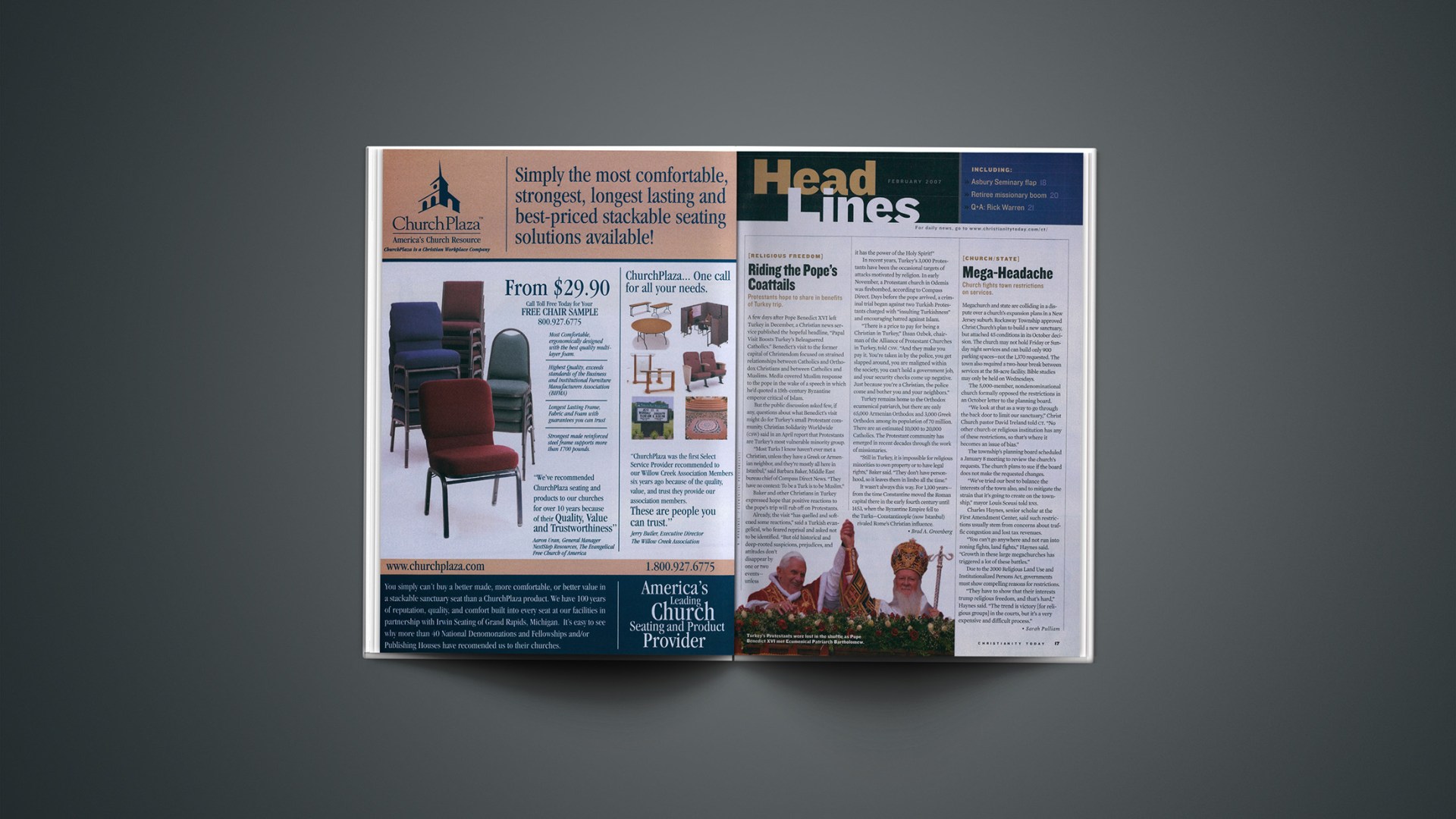 Megachurch and state are colliding in a dispute over a church’s expansion plans in a New Jersey suburb. Rockaway Township approved Christ Church’s plan to build a new sanctuary, but attached 45 conditions in its October decision. The church may not hold Friday or Sunday night services and can build only 900 parking spaces—not the 1,370 requested. The town also required a two-hour break between services at the 58-acre facility. Bible studies may only be held on Wednesdays.