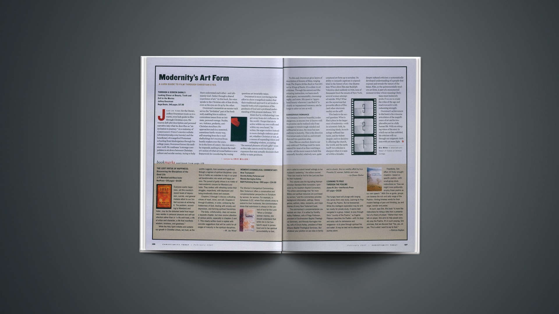 Overstreet is most convincing in his effort to show evangelical readers that their traditional approach to art tends to impede both a rich experience of the goodness of God and a profound understanding of this present darkness. “If I think that by withdrawing I can get away from sin’s influence in the world, I forget that sin is active within my own walls and within my own heart,” he writes. He urges readers instead to more daringly embrace good art, whether Christian or not, as a means of expanding vision and enlarging wisdom, accepting “the sensual pleasure of God’s gifts” even as they take care to avoid the kind of exposure that may actually diminish their ability to taste goodness.