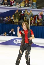 It would be wrong to say Blades of Glory crackles with sexual tension. Perhaps sparkles is the right word here, due to the sequins that skaters are so fond of. Like the sequins, sex seems to cover everything. Though there’s no real implication that Chazz and Jimmy have the potential to be lovers, it’s clear that the humor of their pairing relies to some extent on the specter of them as a couple (notably, finding this intrinsically funny is quite un-PC). And Chazz is nothing if not a Lothario on blades. The admitted sex addict hits on Nancy Kerrigan with the line, “You an official here? Because you have officially [turned me on]!” Don’t even get me started on all the crotch jokes. Even the women in audience were seen cringing after a few of the ill-placed blows.