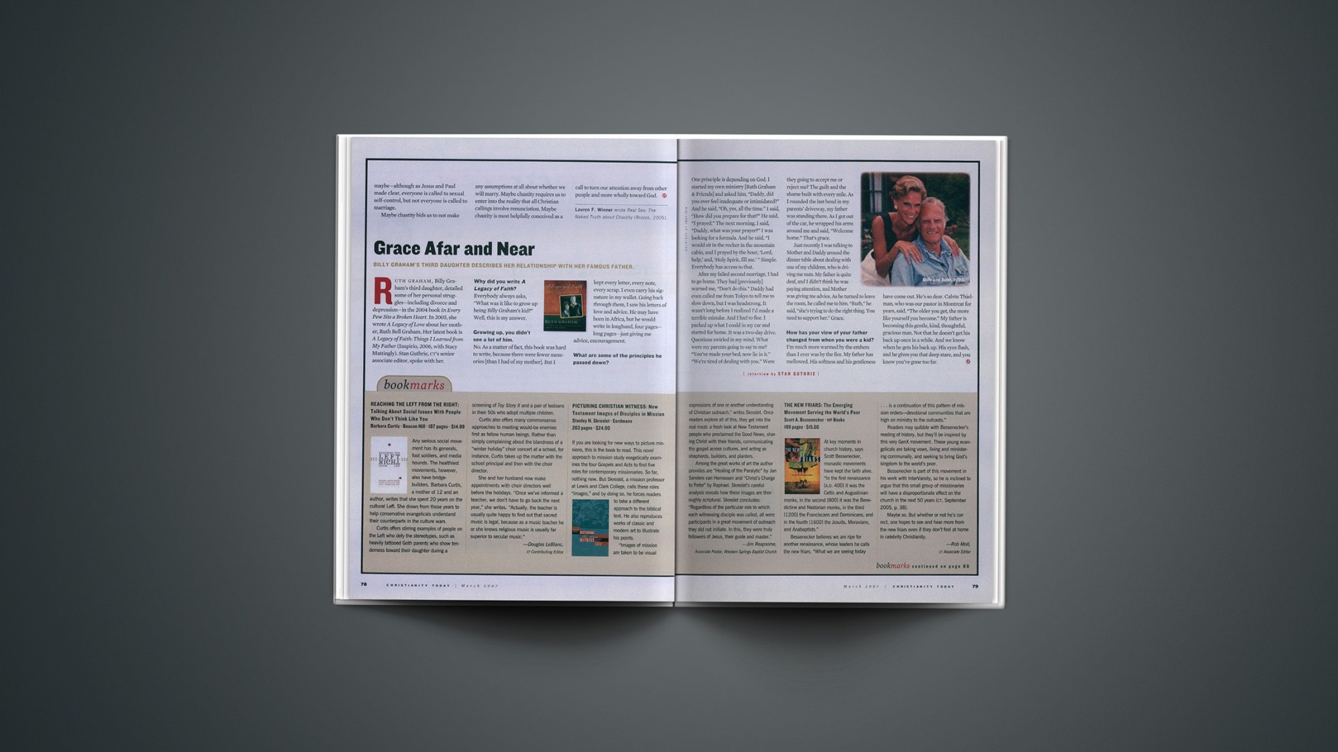 Ruth Graham, Billy Graham’s third daughter, detailed some of her personal struggles—including divorce and depression—in the 2004 book In Every Pew Sits a Broken Heart. In 2005, she wrote A Legacy of Love about her mother, Ruth Bell Graham. Her latest book is A Legacy of Faith: Things I Learned from My Father (Inspirio, 2006, with Stacy Mattingly). Stan Guthrie, CT’s senior associate editor, spoke with her.