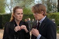 Funeral opens with an animated titles sequence that follows a cartoon hearse as it travels a winding path over a roadmap. When the hearse finally reaches its destination (a lovely country manor somewhere in rural Britain), Daniel (Matthew MacFadyen) solemnly watches as the casket of his dead father is unloaded and brought into the house where it will sit for a quiet family funeral. When the casket is opened, however, it turns out the wrong body has been brought! And so begins the barrage of mishaps, calamities, and unfortunate events that will make this simple, dignified occasion anything but.