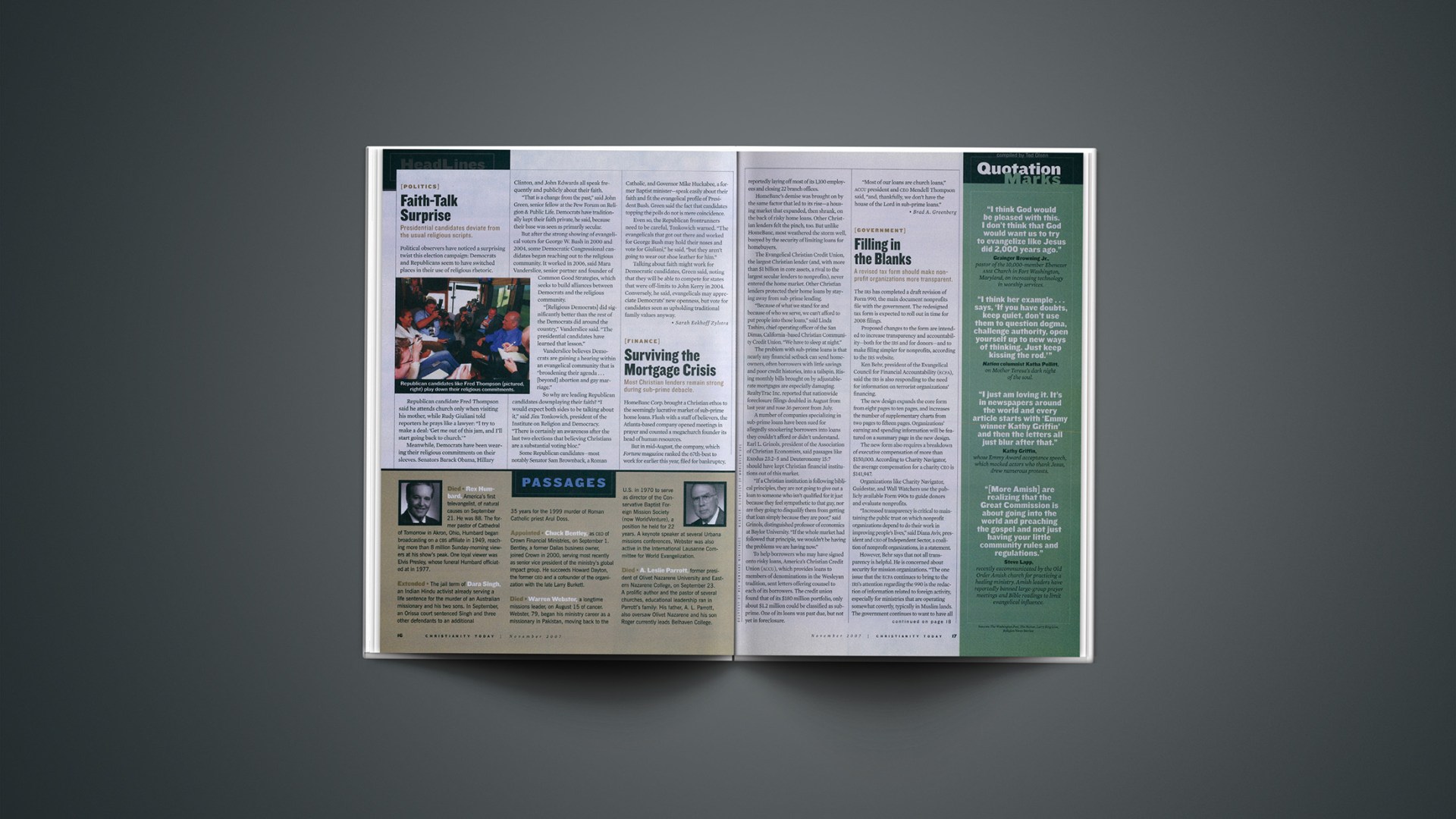 Earlier Quotation Marks columns are available from the October 2007, September 2007, August 2007, July 2007, June 2007, May 2007, April 2007, March 2007, February 2007, January 2007, December 2006, and earlier issues of Christianity Today.