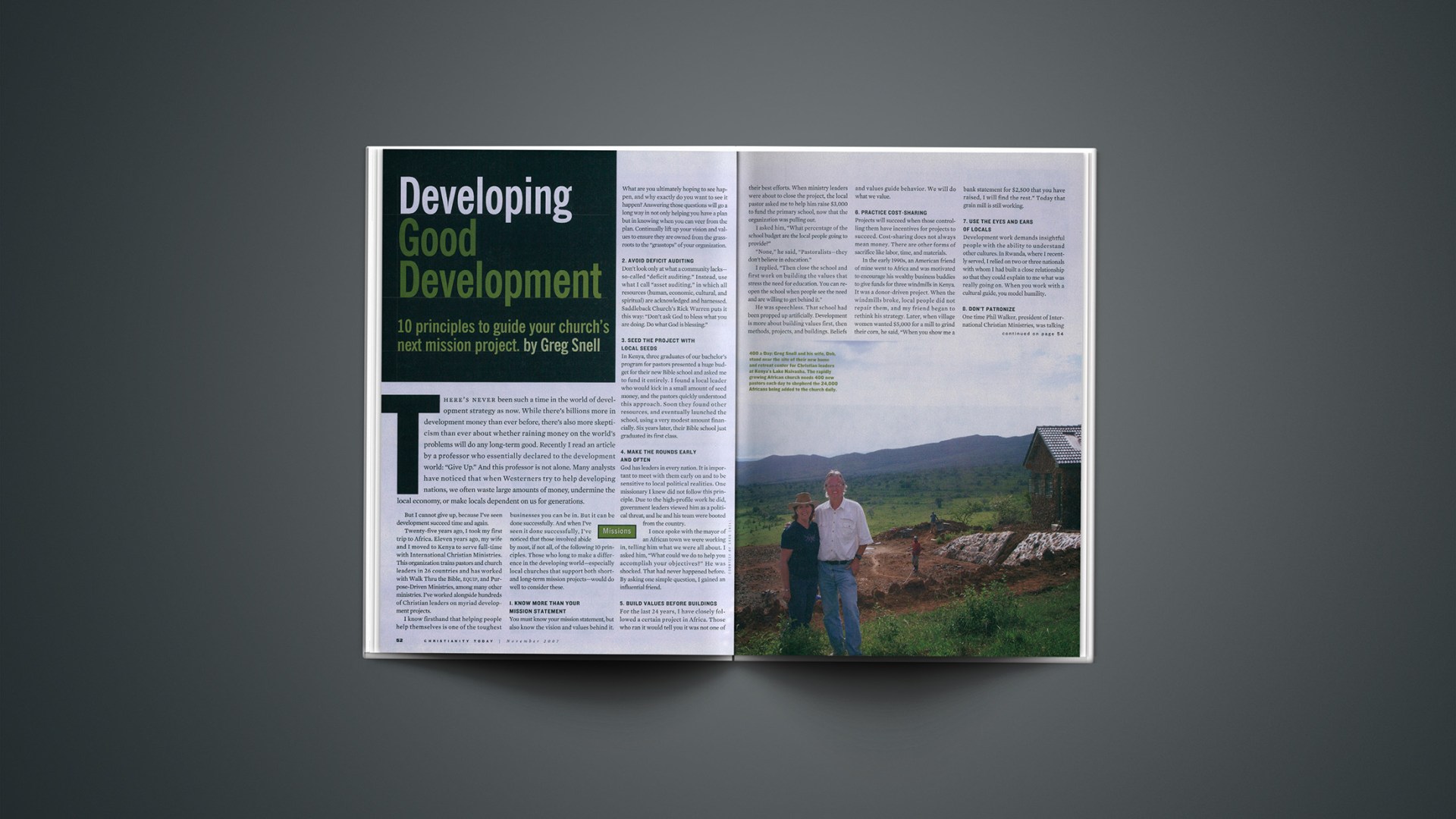 I know firsthand that helping people help themselves is one of the toughest businesses you can be in. But it can be done successfully. And when I’ve seen it done successfully, I’ve noticed that those involved abide by most, if not all, of the following 10 principles. Those who long to make a difference in the developing world—especially local churches that support both short- and long-term mission projects—would do well to consider these.