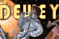 The story begins as Cox, now an old man, is backstage with his guitar, awaiting his cue. As he stands with head bowed, leaning against a wall, the nervous stage manager reminds him that he goes on in two minutes. But Cox’s longtime friend and his band’s drummer (an unnamed character, well-played by Tim Meadows) tells him that, before he performs, Dewey has to think about every single moment of his life. This first laugh in the film sets up a pattern: characters enunciating exactly what the film is trying to get across, as if dimmer audience members are in danger of missing it. For example, the next scene shows young Dewey and his brother Nate setting out for a day of fun. Nate keeps saying things like, “It’s a good thing I’m going to live a long, long time!” and “Nope, nothing horrible is going to happen today!” The boys end up dueling with machetes in the barn, and with one swipe Dewey cuts his brother in half at the waist; the unoccupied legs now stand beside to the top part of the torso, which is upright on the ground. Dewey tells Nate he’ll be OK, but Nate says, “I don’t know, Dewey, I’m cut in half pretty bad!” The doctor is unable to save Nate, and Dewey is so traumatized that he loses his sense of smell. “You’ve gone smellblind!” his mom exclaims.