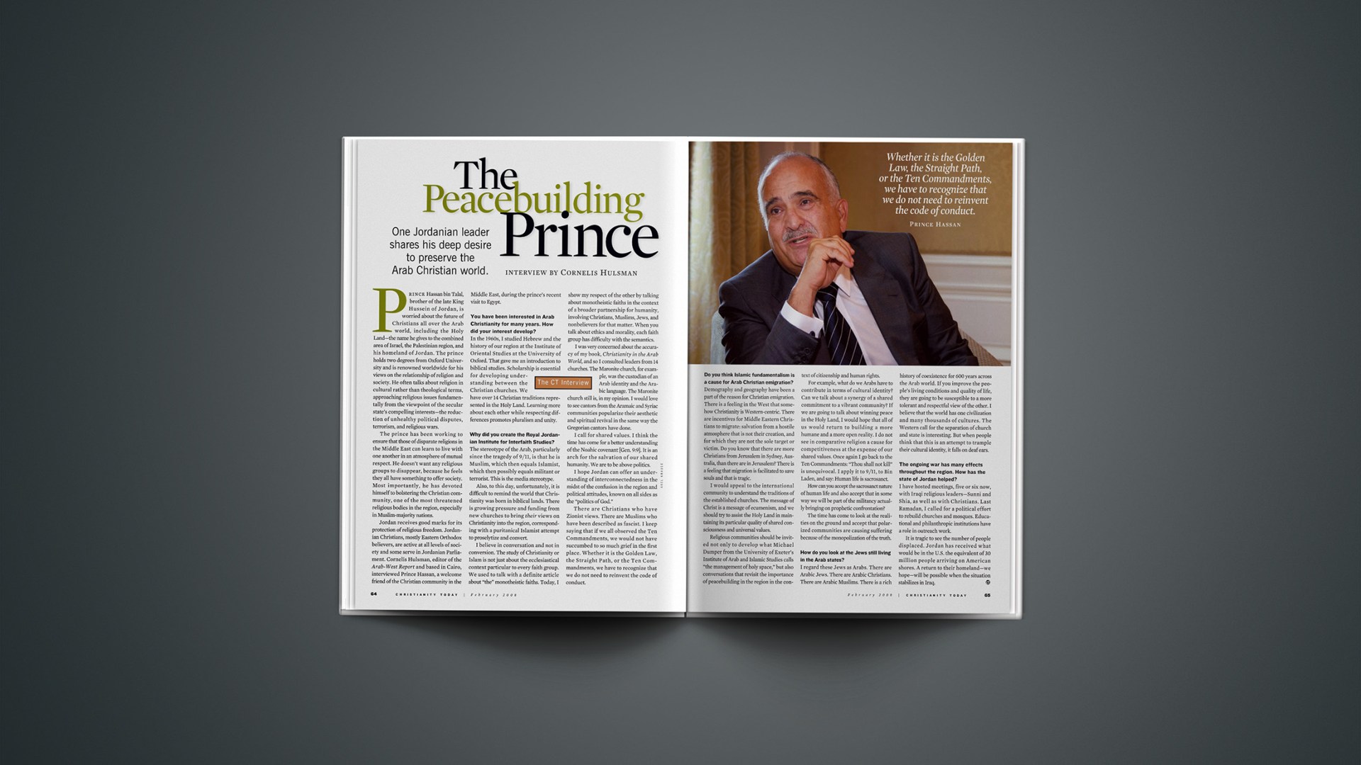 Prince Hassan bin Talal, brother of the late King Hussein of Jordan, is worried about the future of Christians all over the Arab world, including the Holy Land—the name he gives to the combined area of Israel, the Palestinian region, and his homeland of Jordan. The prince holds two degrees from Oxford University and is renowned worldwide for his views on the relationship of religion and society. He often talks about religion in cultural rather than theological terms, approaching religious issues fundamentally from the viewpoint of the secular state’s compelling interests—the reduction of unhealthy political disputes, terrorism, and religious wars.