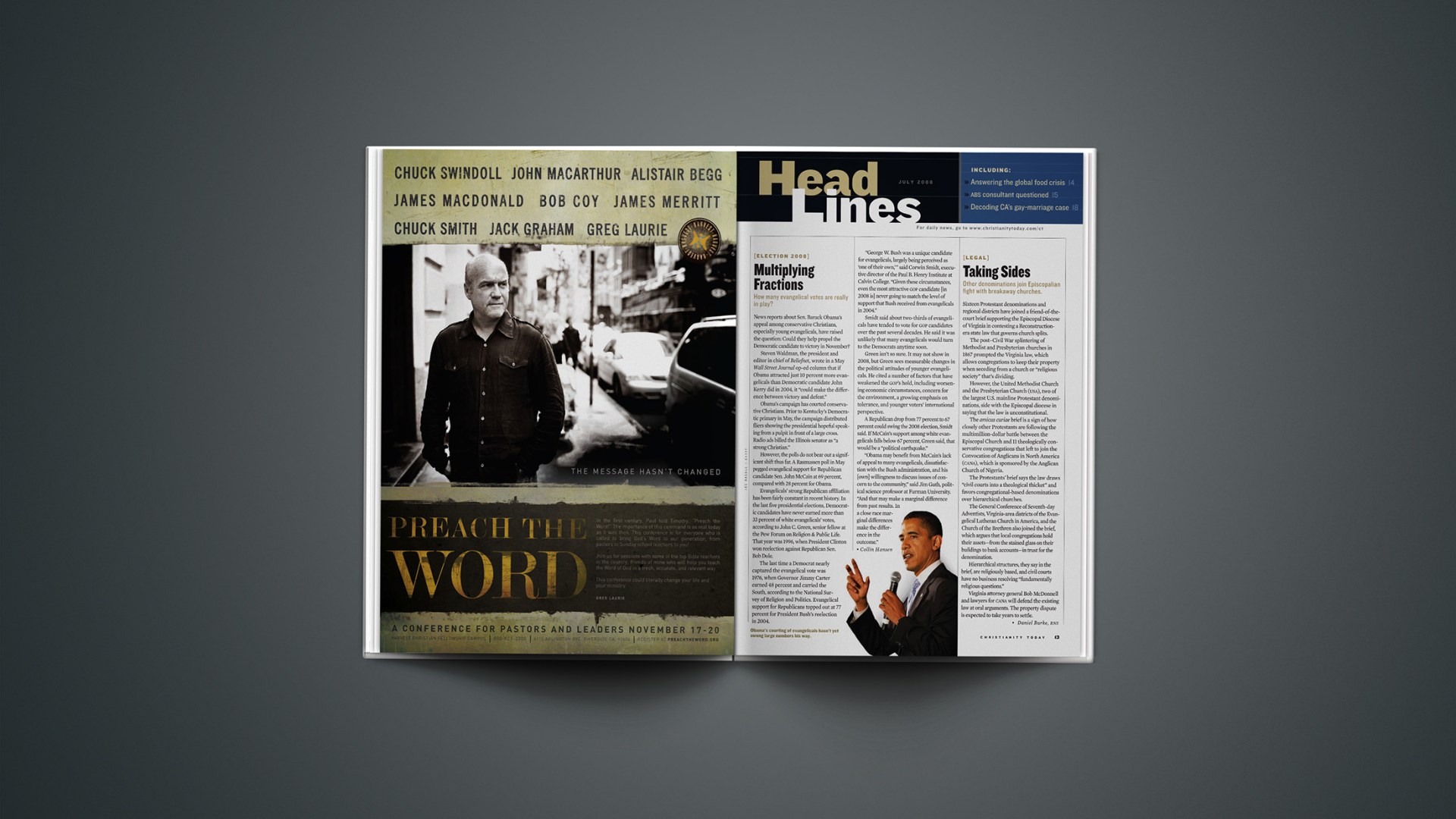 Our full coverage of the presidential race, including the June cover story on “How to Pick a President” and a quiz on candidates’ statements about faith, is in our special section on election 2008.