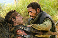 Thrown together on the set of their Vietnam War movie, all of these actors are out to prove one thing or another. Tugg worries that his days as an action-movie star are coming to an end, and he hopes to prove himself as an actual thespian; Jeff is battling drug addiction, and the fact that an animal steals the stuff he brought with him into the jungle sends him into serious withdrawal; and most significantly, Kirk has had his pigmentation treated by a doctor so that he can pass himself off as an African-American. The fact that Kirk insists on talking like a black man from the 1960s, even when there are no cameras rolling, gets on the nerves of his genuinely black co-star Alpa Chino, who fires back with a series of Aussie stereotypes. (No one, incidentally, asks Alpa Chino why he is named after an Italian-American actor.)