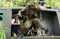 Directed by Stiller from a script he wrote with Etan Cohen (not to be confused with Ethan Coen of the Coen brothers) and Justin Theroux, Tropic Thunder concerns a bunch of actors who are working on a Vietnam War epic—a genre that was, itself, very popular in the late 1980s. Things are going very badly on the set, though, so their exasperated director, tired of fighting over the script and how to interpret it, drops them in the middle of a jungle rigged with explosives and hidden cameras, hoping to catch some genuine emotions instead. Naturally, however, the actors get lost—and when they stumble across a heavily armed drug cartel, at least some of them assume that they have met some fellow actors.