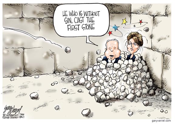 The Washington Post has received 750 e-mails from readers for posting a cartoon caricaturing Sarah Palin speaking in tongues. The cartoonist drew God telling St. Peter “All I can hear is some dam’ right-wing politician spouting gibberish.”