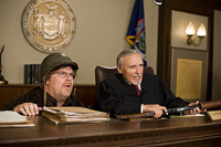What follows is an odd mix of mildly crude humor, civil-religious piety and occasionally contradictory messages. Zucker may have become a conservative, at least on some issues, after the 9/11 attacks, but he still gets a kick out of four-letter words—especially when they are spoken by children—and the occasional bawdy gag. When the spirit of General George S. Patton (Kelsey Grammer) takes Malone into the past, to an anti-war rally staged in 1940, he tells Malone that no one can see them—so Malone immediately reaches for a woman’s breasts, and is promptly slapped by her. Later, when Malone is taken to the future, he discovers that he has died in a terrorist attack, and that all that is left of him is a baseball cap and his big, naked butt, which the forensic scientists immediately begin to play with.