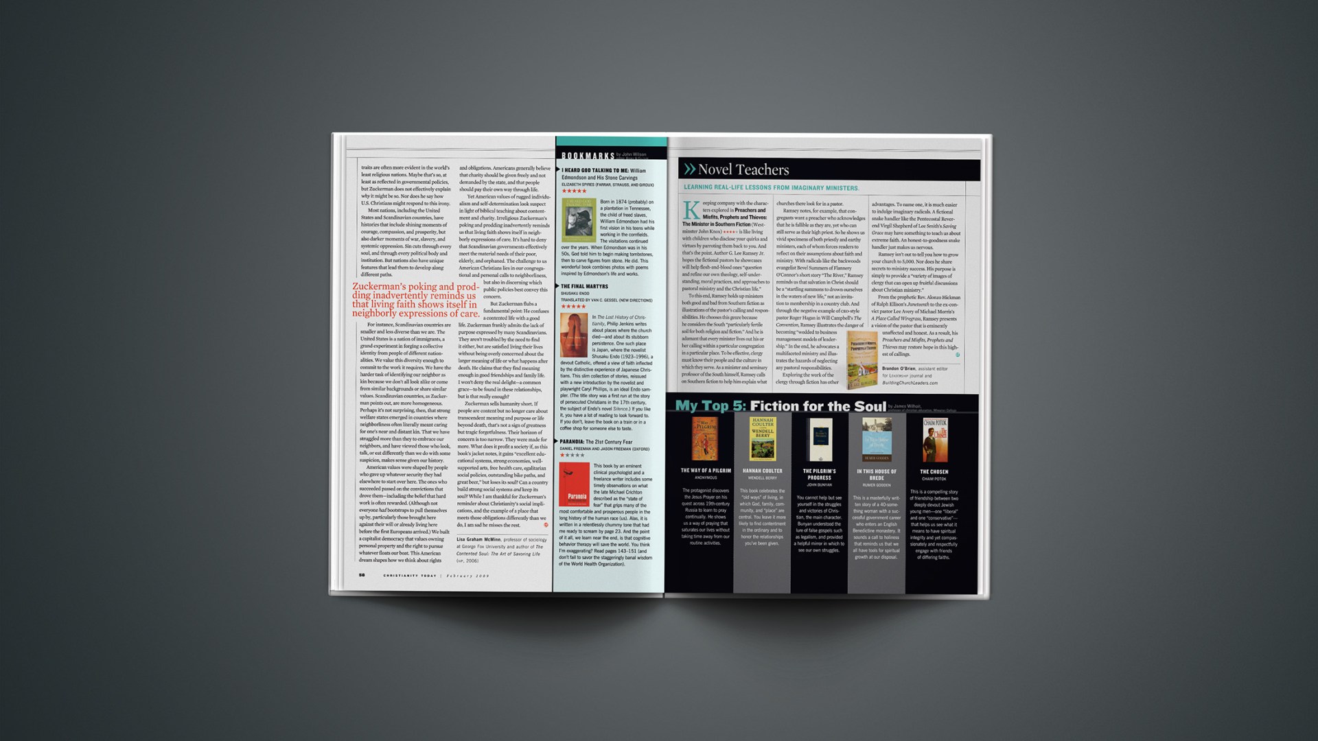 Exploring the work of the clergy through fiction has other advantages. To name one, it is much easier to indulge imaginary radicals. A fictional snake handler like the Pentecostal Reverend Virgil Shepherd of Lee Smith’s Saving Grace may have something to teach us about extreme faith. An honest-to-goodness snake handler just makes us nervous.