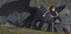 That might be the case if it weren’t for one pivotal secret unbeknownst to the Stoick and the other Vikings: Hiccup successfully shot down a dragon during the opening battle sequence—a fearsome Night Fury, in fact. (The movie celebrates its varied dragon breeds in a masterful stroke of art design … and toy marketing.) The boy later finds the wounded dragon in the forest with plans to finish him off, but discovers he doesn’t have the killer instinct to do it.