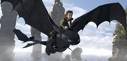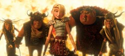 Brace yourself for the first 10 minutes of How to Train Your Dragon. They’re among the most chaotic ever seen in an animated feature, as Scottish-accented Vikings bellow and grunt while warding off a full-scale night attack on their village by flying fire-breathing dragons. All the while our protagonist (a boy named Hiccup) cynically provides commentary with a crash course on the various characters and breeds of dragons—the introductions come so fast amid the dark lighting and shaky “camera” movement, it leaves you wondering which Viking or dragon he’s referring to as they run/fly by. I feared the whole movie would be as numbingly busy and confusing.