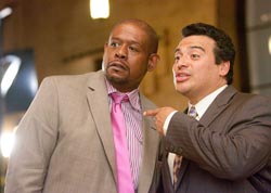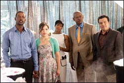 Not a whole lot does, unfortunately. Racial verbal jabs abound, but they are predictable and not particularly funny. (Full disclosure: I’m white.) And we are never convinced that anyone really means what they say. Lucia’s father, Miguel (Carlos Mencia), and Marcus’s father, Bradford (Forest Whitaker), engage in most of the verbal sparring, but it all feels like a hollow routine. (Mencia, incidentally, is best known as a comedian.) Their mutual antagonism has more to do with an extraordinarily coincidental run-in they have hours before the dinner than with cultural assumptions or innate prejudices.