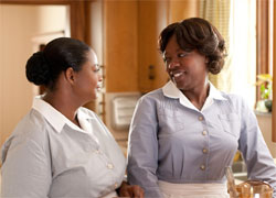 Minny Jackson (Octavia Spencer, left) shares a laugh with her best friend Aibileen Clark (Academy Award® nominee Viola Davis, right), in DreamWorks Pictures’ inspiring drama, “The Help,” based on the New York Times best-selling novel by Kathryn Stockett. “The Help” is written for the screen and directed by Tate Taylor, with Brunson Green, Chris Columbus and Michael Barnathan producing.