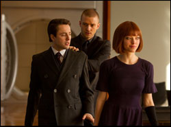 It’s only a matter of minutes till Will is on the run with the daughter, Sylvia (Amanda Seyfried), and from that point on there is not really a development of plot, but rather a catalogue of their adventures. Sylvia, initially resistant, becomes convinced of the injustice of the system. She and Will find ways to redistribute time to the poor, in the process joyously wrecking her dad’s banks. Timberlake really is fine in his role (and does a particularly good turn when weeping, in a convincingly halting and noisy way, when his mother times out in his arms). Seyfried, however, is so visually arresting, delicate and beautiful with large, protruding pale-green eyes, and the character so comparatively underdeveloped—she’s not the sassy, back-talking type—that her looks speak louder than anything she does. It is like Will is racing through the events in the company of a Persian cat.