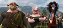 If the laughs in Brave are muted by Pixar standards, so are the tears. The storytelling that made past offerings so compelling involved a potent mix of whimsy and nostalgia; the writers had a knack for subversively tapping adult pathos even while delighting children. (The first five minutes of Up alone kept tissue companies in business.) Brave‘s writers do their best to tug at heartstrings with their exploration of the mother-daughter bond, but while the theme is universal, the treatment is too conventional and lacking in nuance to evoke the real Pixar magic. Although in many ways Brave feels more grown-up than other Pixar films (it’s darker and surprisingly scary in a few spots), thematically it delivers more juvenile, less satisfying fare.