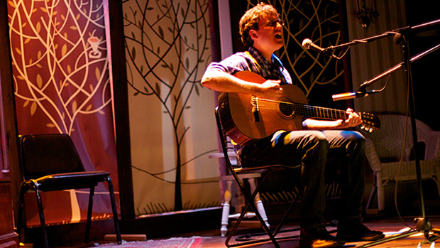 The musicians, though, hold the most difficult task. In a world where independent artists grasp at the elusive attention of apathetic bar folk screaming “Free Bird!”‘ yet again, they are instead met with silence. This crowd’s very admiration and reverence weigh in the balance of the performance. The artist has much to lose. When respect actually can be won, where their message can be heard, when their style can pervade, the artist stands vulnerable before the crowd. Usually with sweat on their brow, and a guitar slung across their shoulder, they stand making quaking jokes, fully understanding the severity of listening, even if they are before the most gracious of an audience.