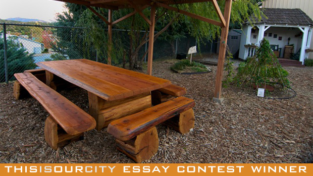 One of our best stories begins with parent volunteers deciding to buy a massive table to sit in the heart of the garden for gathering, eating, and teaching. We looked at everything from school-grade lunch tables to cast-off picnic tables. Then we hit upon the idea of commissioning a table.