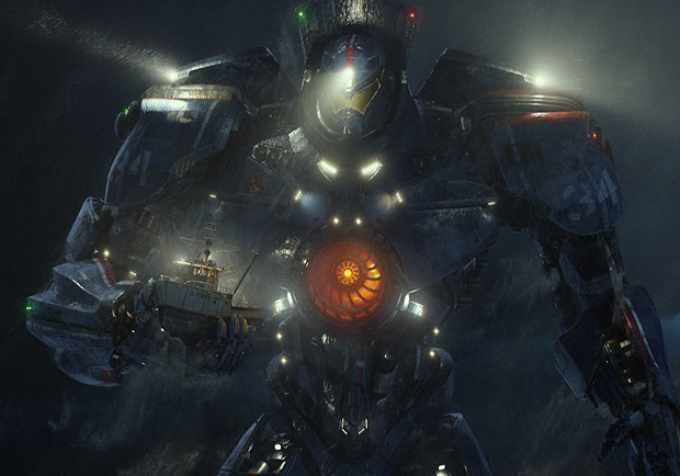 A cross between Real Steel and Godzilla, Pacific Rim follows the military-action formula from the start. It uses an opening battle scene to explain (I use the word loosely) the conflict and outline the basic weapons and strategies used by its participants. Earth is being attacked by giant monsters coming through a dimensional portal ("the breach") in the Pacific Ocean. They are fought back by a group of rangers in "Jaegers," metallic, humanoid-shaped armored vehicles so large they can only be controlled by two pilots whose minds are melded. An early failure makes a maverick pilot doubt himself, setting up a redemption-through-combat story (a la Top Gun), and in between fights there are a few interpersonal conflicts that must be negotiated lest ego and human emotion get in the way of saving the world.