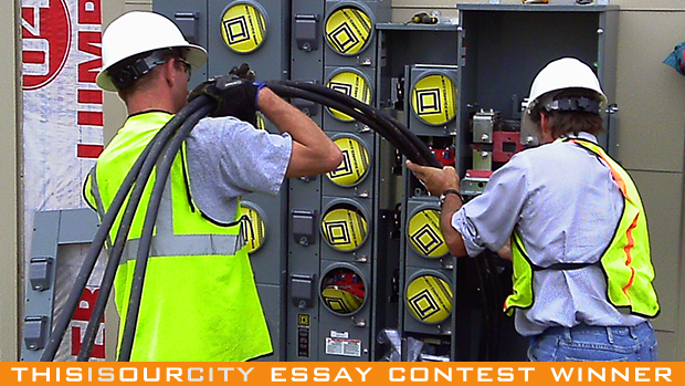 But it's not just a social philosophy. These ideas permeate the entire company culture at Nelson's Lamp Lighters. Every Friday afternoon, Nelson orders pizza and soda. As everyone gathers to pick up paychecks, we share the frustrations and victories of the week—the best stories told and retold years later. Each summer the company hosts a summer picnic and annual Lamp Lighter Electrician Olympics as a chance to bring the families in the company together. Winter brings around the annual catered Christmas party where everyone shares the highlights of the year and Nelson presents company awards. And as a merit shop, Nelson is committed to giving back 20 percent of gross profits to the employees, in addition to the clothing and tool allowance programs workers are enrolled in when they are hired.