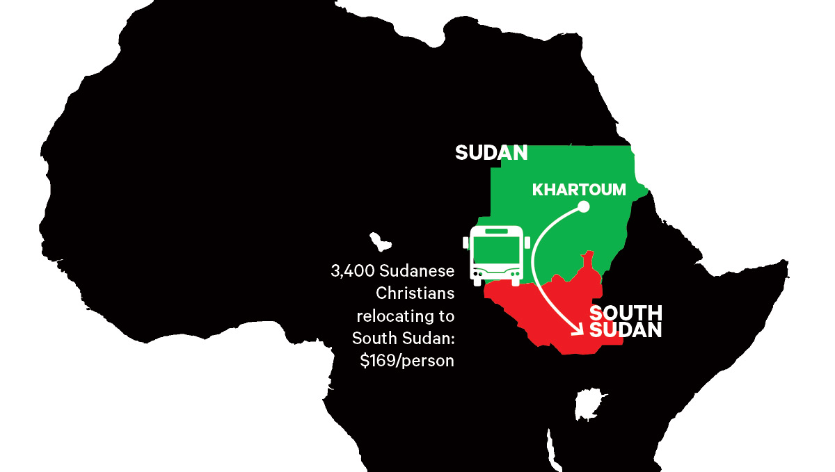 Barnabas Fund international director Patrick Sookhdeo says that won't be a problem with the Sudan relocation. "There is no danger of culture shock on arrival. The people are leaving an alien culture (Arab and Islamic) and returning to their homeland and their own culture (African and Christian)," he said in an email. "The South Sudanese government and the Africa Inland Church both have programmes to provide a few weeks of care for the new arrivals.After that, they join their relatives and extended families and are re-absorbed into their old communities."