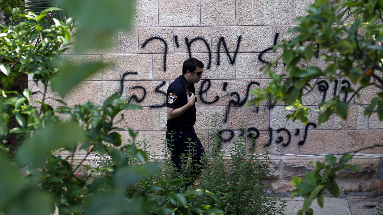 Last week, an assailant defaced the Notre Dame of Jerusalem Center, the local headquarters of the Roman Catholic Church, scribbling graffiti in Hebrew reading, "Death to Arabs and Christians and to everyone who hates Israel." This followed a letter received by a top Catholic official that threatened to kill him and other Catholic clergy in Israel.