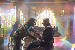 But instead, Old Xavier says that all he has to do is be open to the pain of others, accepting it into himself, that it makes him stronger because it helps him understand others—or something—because he's afraid of his own pain—it's not ever as clear as you'd want it to be, and even as delivered by Patrick Stewart, it's still cliche-riddled, incoherent enough to be laughable. Never mind the fact that what Young Xavier is being asked to do is a literally messianic task. It's such an insincere moment that it clues you in, as a viewer—The writers don't care, so why should I? And by the next scene, Xavier's anxiety is forgotten, and he's back to reading minds like a pro (because, of course, the plot demands it).