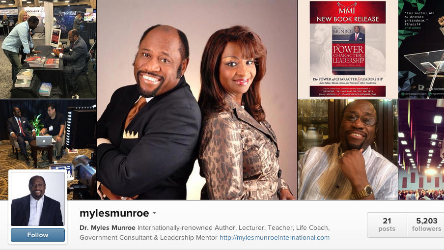 “I remember when he spoke to me and gave me a word so on point. He will be missed,” Rodriguez said on Facebook. He noted on Twitter that “Myles Munroe breathed, lived and died expanding the kingdom of God. His passion for Christ made him a true ambassador of grace and righteousness.”