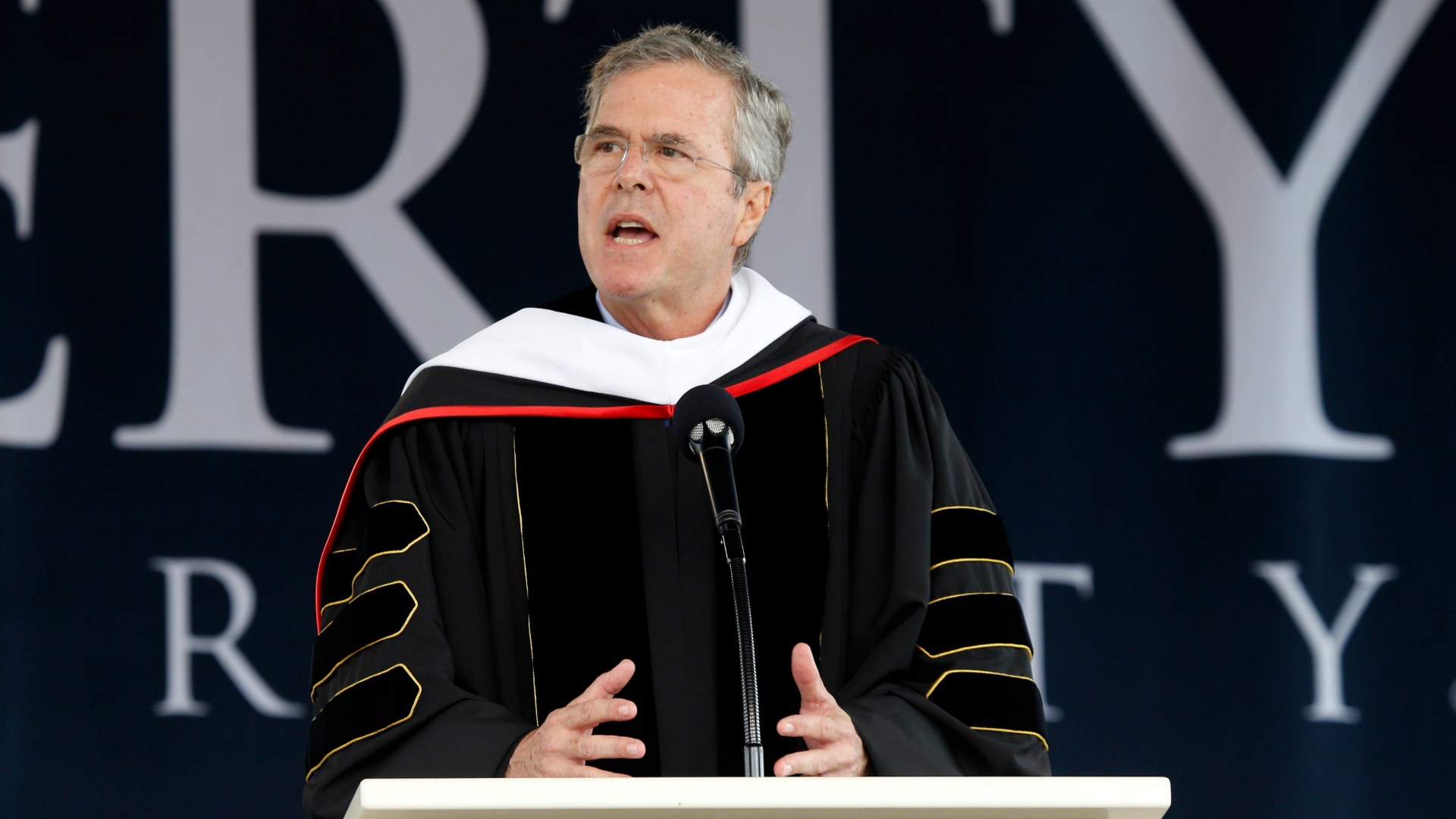 Jeb Bush’s appearance follows a long list of appearances at the school by conservative politicians: Mitt Romney, Newt Gingrich, Ron Paul, Rick Santorum, Rick Perry, Michele Bachmann, Herman Cain, Donald Trump, Mike Huckabee, Bobby Jindal, John McCain, Sarah Palin, and Rand Paul. Bush’s commencement address comes 25 years after his father, George H. W. Bush, gave his own address, the only sitting president to do so.