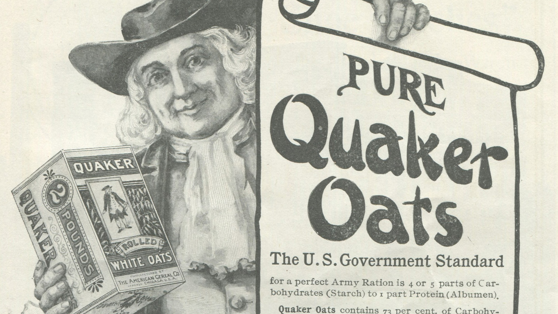 Henry P. Crowell serves as Gloege’s central example of this connection. In 1882 Crowell purchased an oatmeal mill. At the time, oatmeal was sold by the scoopful at general stores across the country. Supplying that kind of basic commodity was no way to make a fortune, so Crowell began selling his oatmeal in sealed packages adorned with the portrait of a smiling, trustworthy Quaker gentleman holding a scroll that read, “Pure.” It no longer mattered whether the shopkeeper kept the ants out of his oat barrel, or whether his suppliers shipped the product in sanitary containers. Customers could trust Quaker oatmeal because of the promise on the label. As Gloege writes, “Through the trifecta of trademark, package, and promotion, a consumer society was born.”