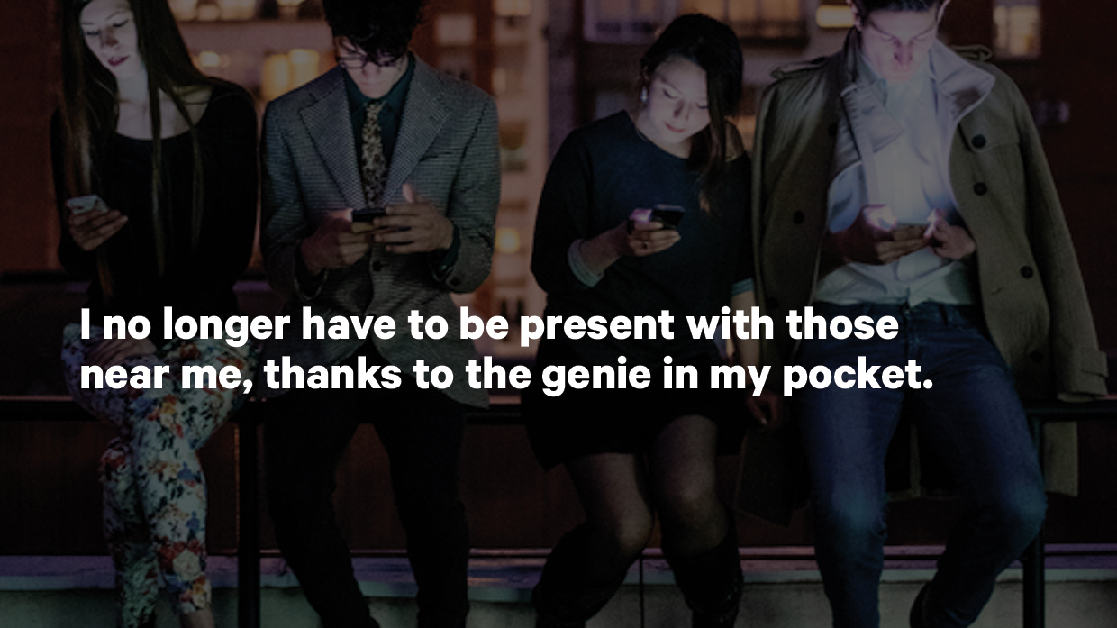 I no longer have to be present with those near me, thanks to the genie in my pocket.