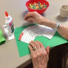 For two hours between breakfast and lunch, my mother brought Bible lessons, snacks, and crafts to a 14-person crowd 80, 90, and even 100 years older than traditional VBS students. Their age required a bit of flexibility and options—same goes for kids, actually—with some sorting Fruit Loops to glue on a Noah’s Ark-themed crafts, others coloring with crayons, and a few just snoozing, including my 100-year-old grandmother.