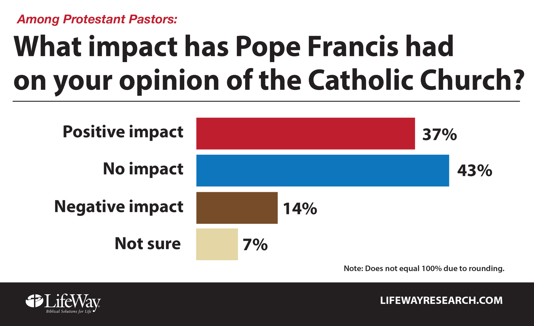 “Our sample itself—Protestant pastors—is named after the Protestant Reformation, so they are particularly interesting to survey,” said Ed Stetzer, executive director of LifeWay Research. “And the survey says that this pope does, indeed, have a ‘Francis effect,’ even on a group of people named for protesting the very faith the pope leads.”