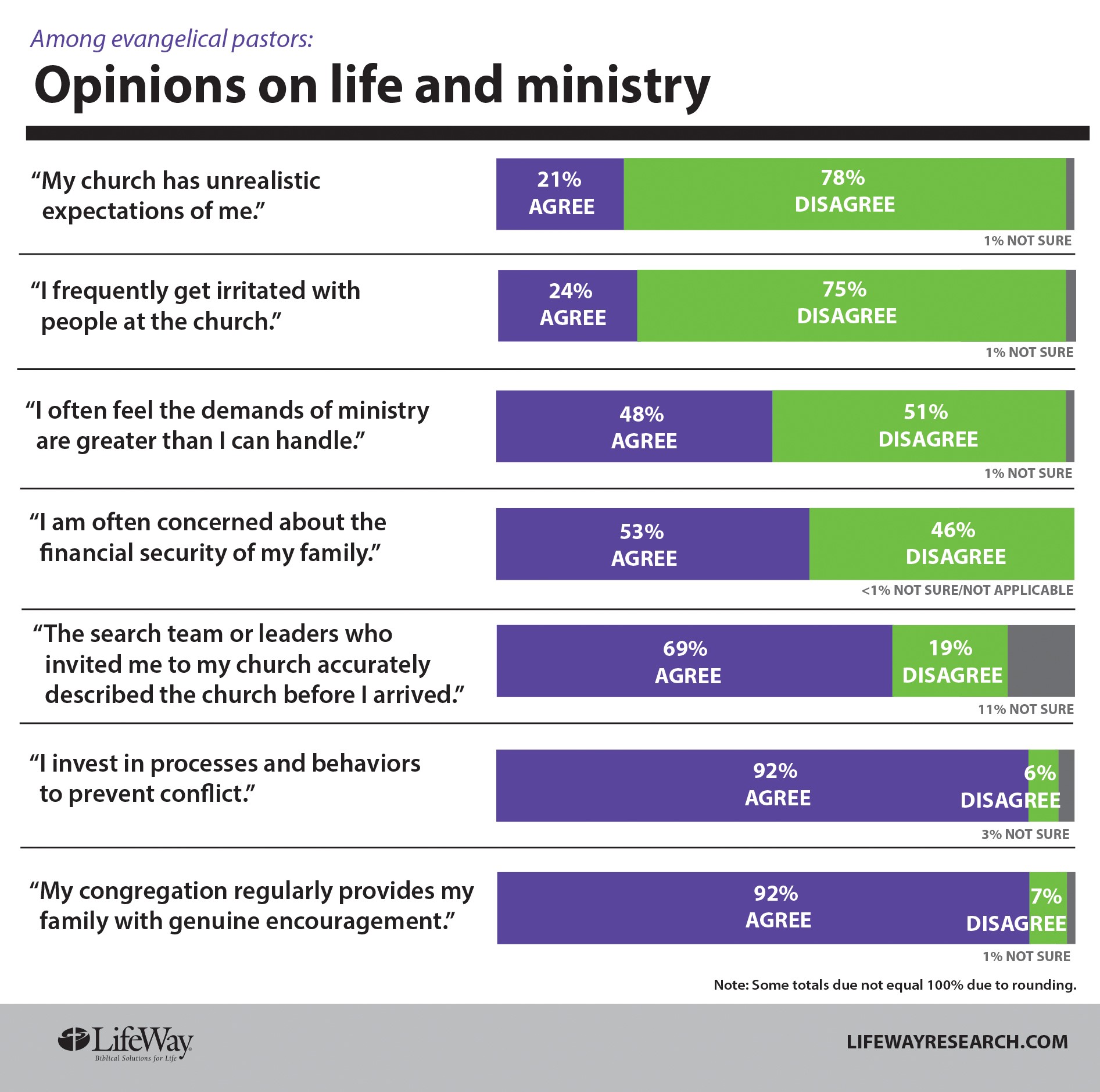 In contrast, 20 percent of pastors say their family resents the demands of pastoral ministry, and more than a third (35%) say the demands of ministry prevent them from spending time with their family.