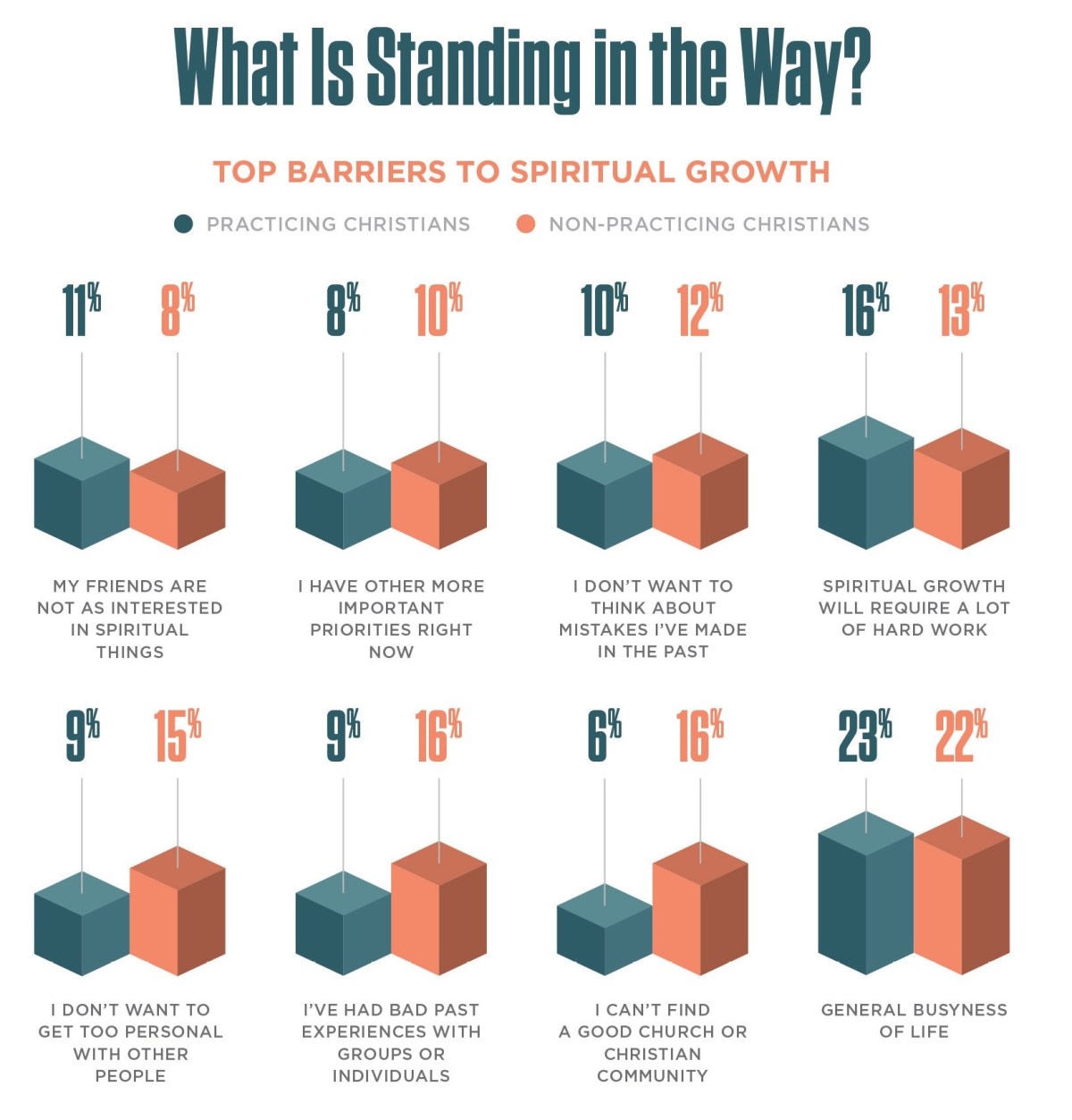 Interestingly, those who are involved in discipleship activities don’t report much more progress in their spiritual growth than those who aren’t involved. Barna states this is a perception problem.