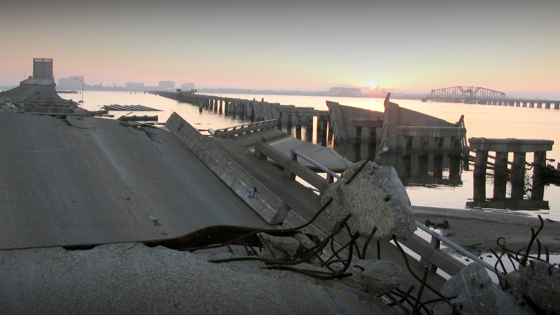 In the 90 days since Hurricane Katrina, recovery had barely begun. At landfall, the storm covered the eastern half of the Gulf all the way to the tip of the Yucatan Peninsula. And Biloxi was one of the hardest-hit cities. Wind gusts reaching 90 mph pummeled the area for over 17 hours as the storm surge pushed a 28-foot wall of water landward from the shore and through the inlet to the bay.