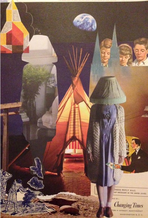 The girl in the cardigan is still here, too. I find myself wanting her to like me, hoping she’ll notice my vintage shoes. It’s only now that I see she has a lampshade on her head.