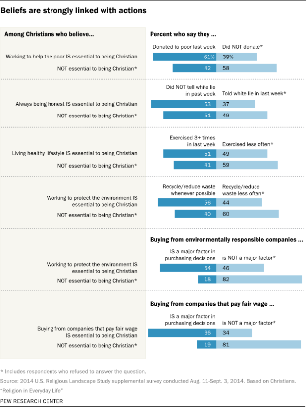 Among all highly religious Christians, Pew did find a connection between beliefs and behavior.