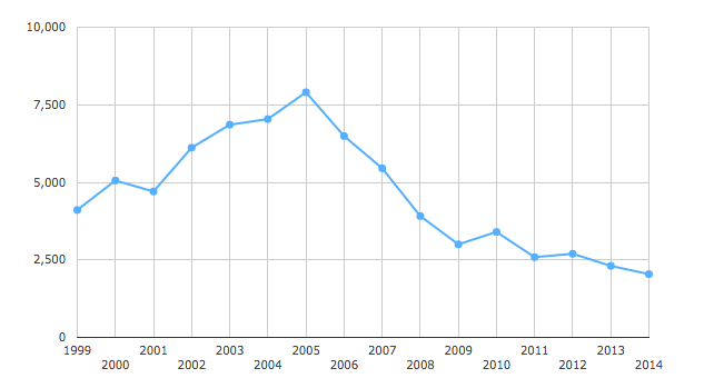 Twelve years later, that number has dropped to 5,648 children—the lowest level in 35 years, according to recently released statistics from the US State Department on fiscal year 2015 (Oct. 1, 2014 to Sept. 30, 2015).