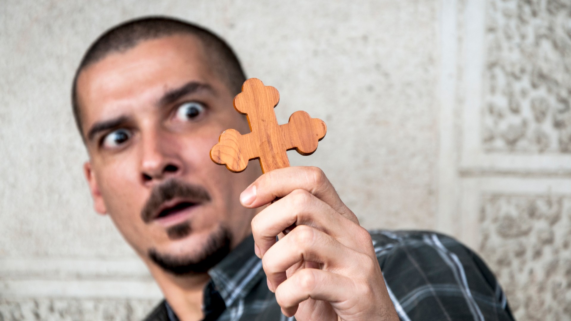 When I first laid eyes on the image above, I confess I was more than a little confused. What was it about this cross bottony that made it so terrifying to our recoiling, mustachioed friend? Had it been used in a Madonna video? Had someone drenched it in Axe body spray? Did he just really prefer Celtic crosses instead? It was impossible to say.