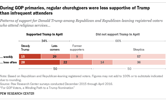 During the Republican primaries, two-thirds of regular churchgoers did not support Trump: