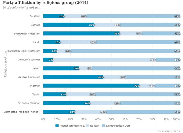 However, evangelicals remain one of the most Republican religious groups in America overall: